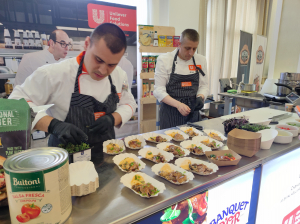 На тазгодишните професионални изложения Храни и напитки за туризма 2025, провели се на 23-ти Април в Златни пясъци и 29-ти Април в Слънчев бряг, екипът на Саранда дистрибюшън представи съществуващи и нови продуктови решения за професионалните си клиенти. Печива с топ качество, като кроасан с крем пистачио, кроасан с квас, кроасан с яйчен крем, напълно изпечен замразен кроасан, мини пълнозърнест кроасан със семена на топ цена, разнообразни десерти. Решения за италианска пица - блатове за пица Неаполитана и А Ла Романа, италиански колбаси за пица - прошуто котто, вентричина, салсиче пиканте с топ качество и цена, нови домати за пица и паста с топ качество - консерва Buitoni и сушен доматен концентрат Knor. Решения за паста, за бургери, за хот дог. Висококачествени заготовки сувид на меса като свински джолан инд. порция, свински ребърца със съответните решения за многообразни сосове. Веган продукти Garden Gurmet - бургери, нъгети и филенца, веган сметана Flora, както и много други. След многобройните кулинарни презентации с топ готвачи и срещи с клиенти, щандът ни беше отличен и с награда за най-атрактивно представяне.